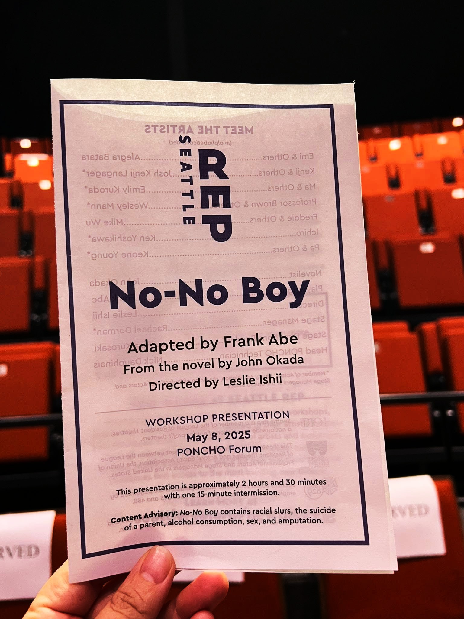 Audience is who we make theater for, and it was a privilege to have such a lively one witness the first staged reading of our new theatrical adaptation of John Okada’s No-No Boy at the Seattle Rep on Thursday, May 8.