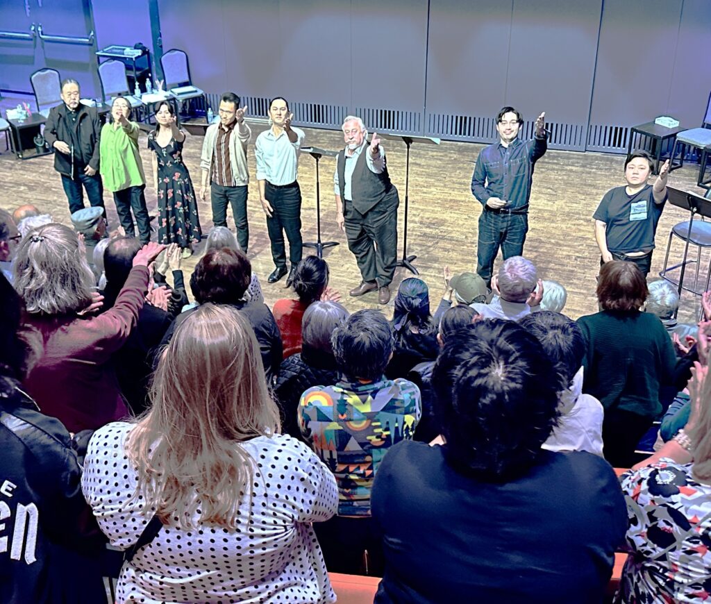 But it was the audience that brought the energy and emotion to the room. Their reaction to the play was overwhelming and I’m still processing it. The material landed hard with many who said they were excited to see how I had reframed the core of the novel to bring a Japanese American sensibility in line with where we are in the 21st century — what Steve Fujimura perceptively called the “re-contextualization of incarceration history.” Their response shows we’re on the right track and that means the world to me.
