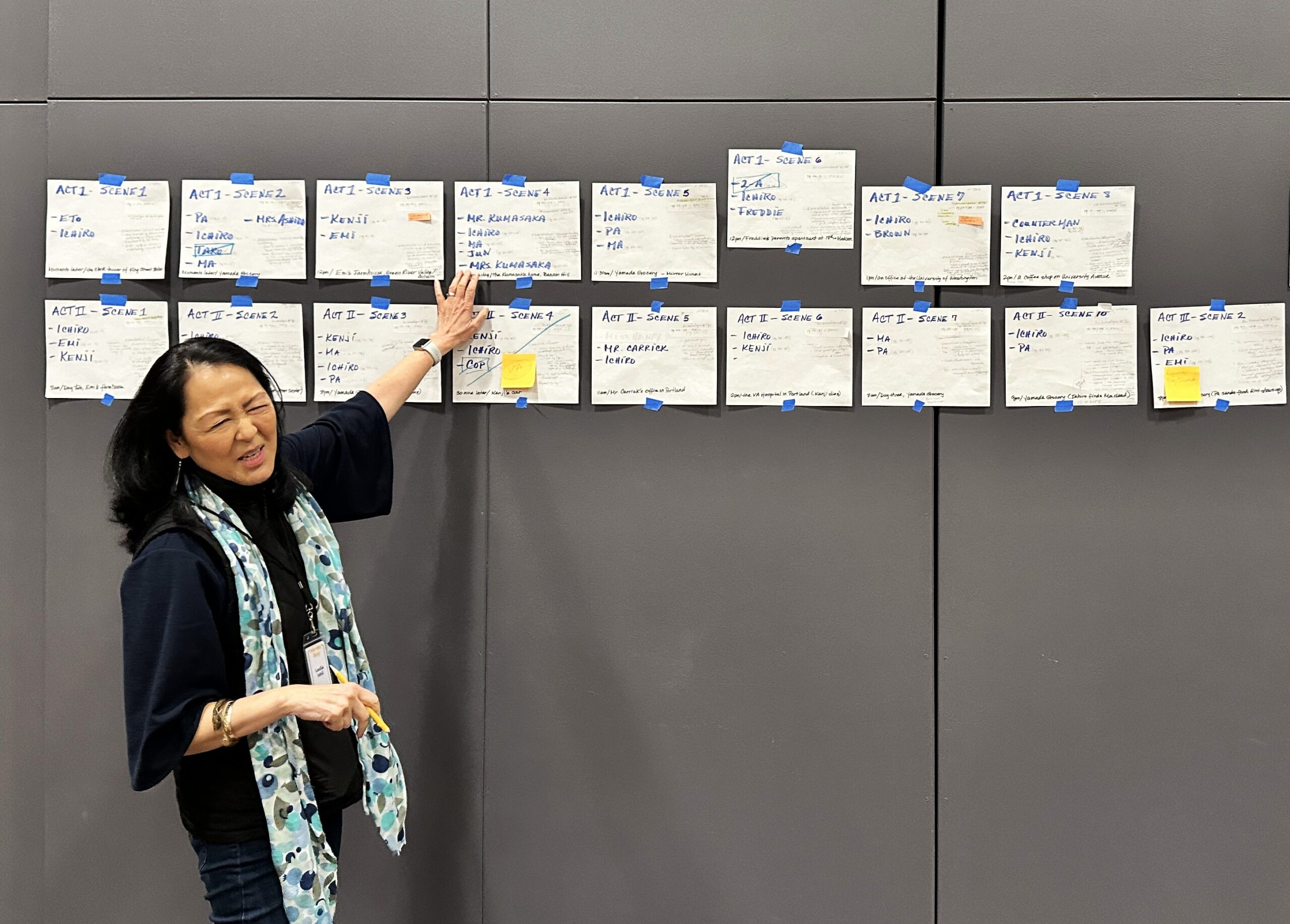 Director/dramaturg Leslie Ishii with her scene breakdowns.